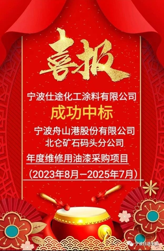 成功中標(biāo)!寧波仕途化工中標(biāo)舟山港北侖礦石碼頭“2023-2025年度維修油漆采購(gòu)”項(xiàng)目公開(kāi)招標(biāo)!